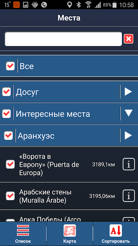 ● chodzić po Madrycie i na obrzeżach miasta. wolny tryb spacer dla tych, którzy chcą wybrać swój kierunek. Ponadto, nie wszystkie miejsca, które warto odwiedzić w Madrycie i okolic mogą być zawarte w wycieczki. Zrób swój własny plan na spacer, po prostu wybierając pożądanych lokalizacji w katalogu, a oni będą natychmiast wyświetlane na mapie. Jednocześnie innych obiektów, można tymczasowo usunąć kartę.
