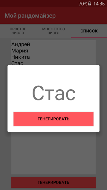 Aplikacja do generowania liczb losowych z losowo wybranych z listy