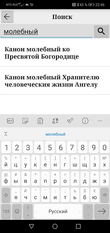 Możesz ustawić język - czytaj w języku rosyjskim lub cerkiewnosłowiańskim. Należy pamiętać, że w cerkiewnosłowiańskim zestaw modlitw jest znacznie mniejszy niż w rosyjskim!