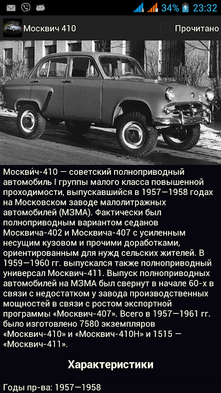Это простой в использовании и абсолютно бесплатный справочник по моделям Москвич (АЗЛК, МЗМА, КИМ) которые когда либо выпускались. История этих автомобилей уходит почти на 90 лет в прошлое и включает в себя очень разнообразные автомобили (например народные малолитражки или спортивные болиды).