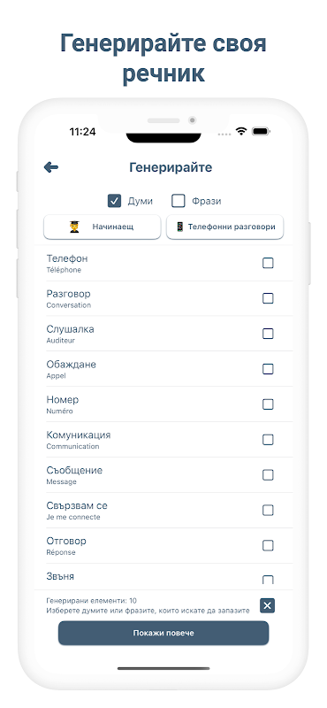 Nasza aplikacja jest specjalnie zaprojektowana dla osób mówiących po bułgarsku, zawiera tłumaczenia, wyjaśnienia i przykłady w języku bułgarskim, aby pomóc Ci łatwo zrozumieć francuskie koncepcje. Łączy ona lukę między tymi dwoma językami, zapewniając bezproblemową naukę.