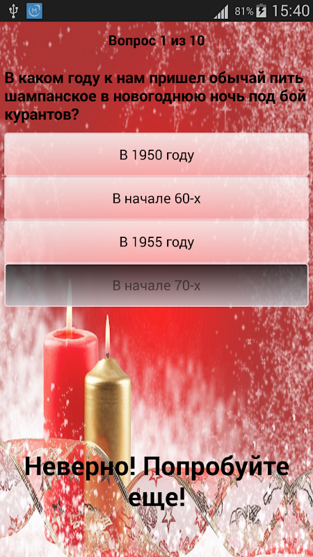 С помощью этого приложения вы весело и интересно узнаете много нового о Новом годе и Рождестве. Новогодние игры - отличное занятие для долгих зимних вечеров в преддверии праздников. Игра оформлена в виде викторины. А если вам удастся допустить менее 4-х ошибок, то призом будет возможность загадать желание и узнать, сбудется ли оно. Также есть возможность просто полистать и почитать интересные факты о Новом годе и Рождестве.