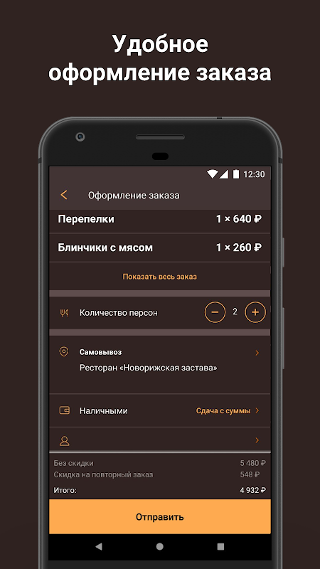 Zainstaluj aplikację i zamówić dostawę doskonałych dań kuchni dla smakoszy rasy restauracji „Novorizhskoye Outpost!”