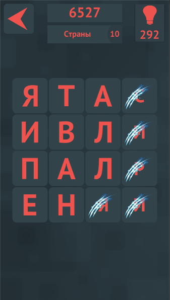 Выделяйте пальцем буквы и находите все слова, чтобы пройти уровень.