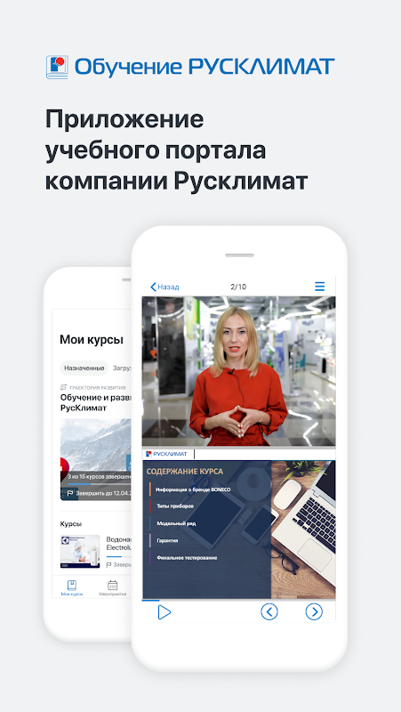 Uwaga: Aby korzystać z aplikacji, należy posiadać konto w portalu szkoleniowym Rusklimat na stronie https://sdo.rusklimat.ru/