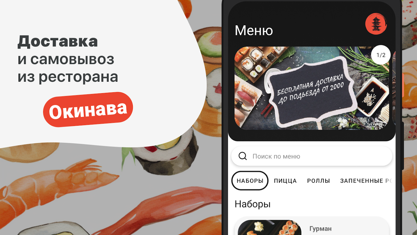 Jak złożyć zamówienie w aplikacji „Okinawa”: wybierz z menu interesujące Cię pozycje, dodaj je do koszyka i przejdź do ekranu realizacji zamówienia (klikając na ikonę koszyka).