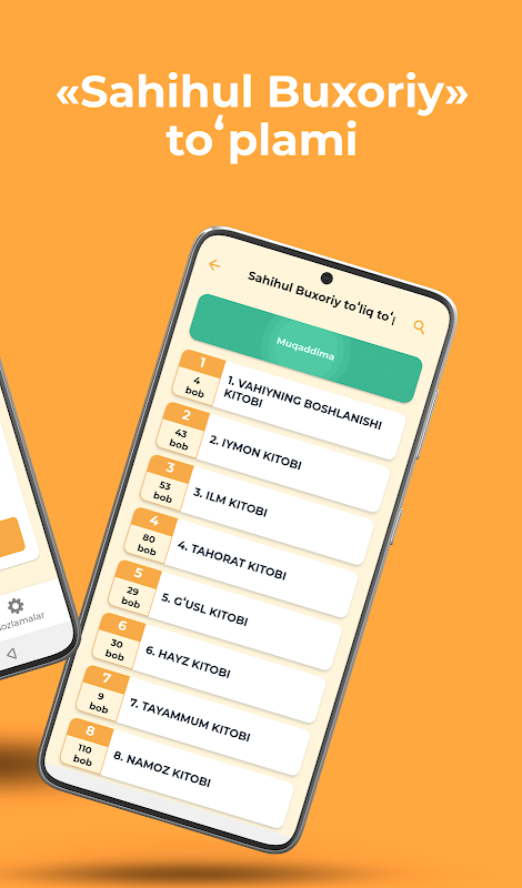 Kelgusid „Zhomeyi Termiziy”, „Muzhtaboi Nasoiy”, „Sunani Ibn Mozha”, „Muvattoi Molik”, „Sunani Dorimiy”, „Sahhihi Ibn Hibbon” tuplamlarini szynka zhoylash rezhalashtirilgan.