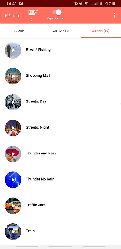 ✔️ wybierz szum tła z listy i kliknij zadzwoń