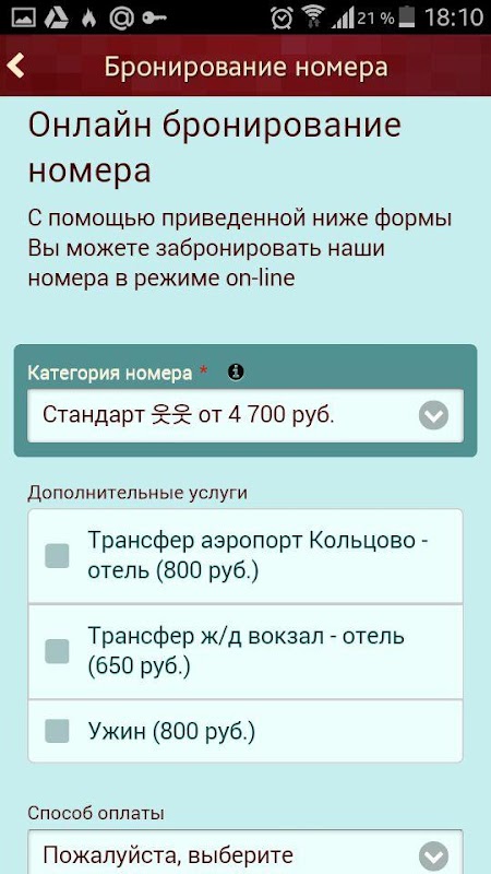 - заказывать дополнительные услуги: ужин в номер, место на парковке и др.;