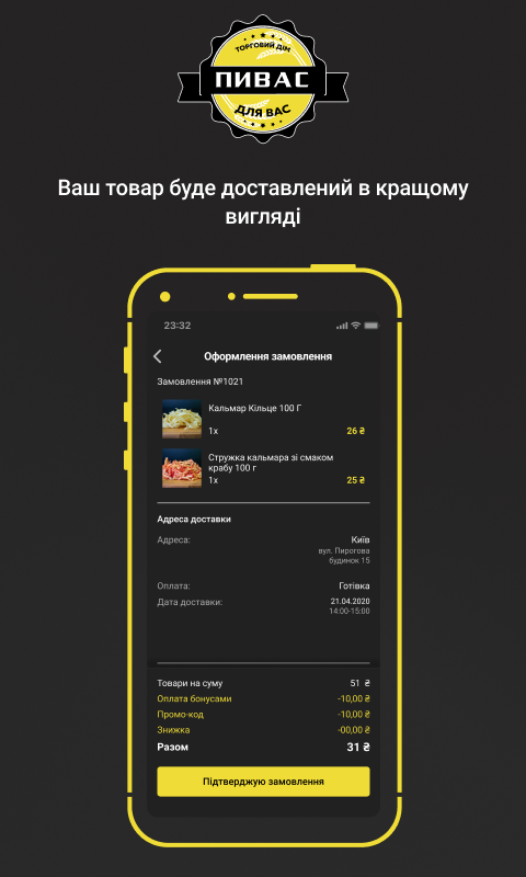 Zamów piwo z dostawą do domu lub zabierz je ze sobą, odwiedzając nasz sklep w Zhovti Vody. Za pomocą aplikacji mobilnej „Piwo dla Ciebie” z łatwością zamówisz piwo na każdy gust, przekąski do piwa, wina stołowe. Szczegółowe opisy i wysokiej jakości zdjęcia dostępne w aplikacji pomogą Ci wybrać dokładnie to, czego chcesz.