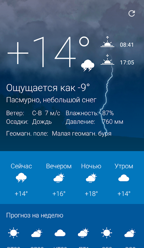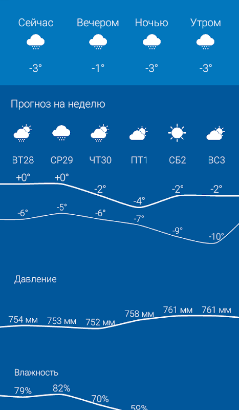 Всегда актуальная информация о температуре, скорости ветра, давлении, влажности и не только.