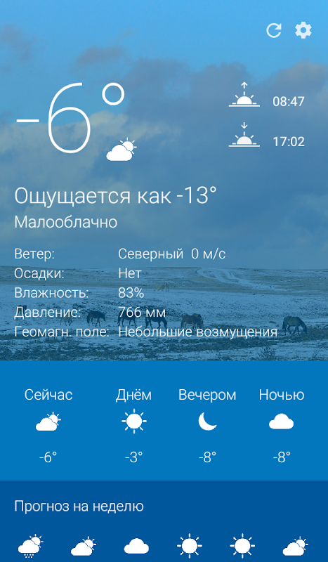 Зайдя в приложение ГАЙ.РФ Погода, вы моментально получите подробный и актуальный прогноз погоды на 24 часа и на неделю в виде графиков. Причем яркий и удобный интерфейс с приятными иконками поможет Вам оценить ситуацию с одного взгляда.