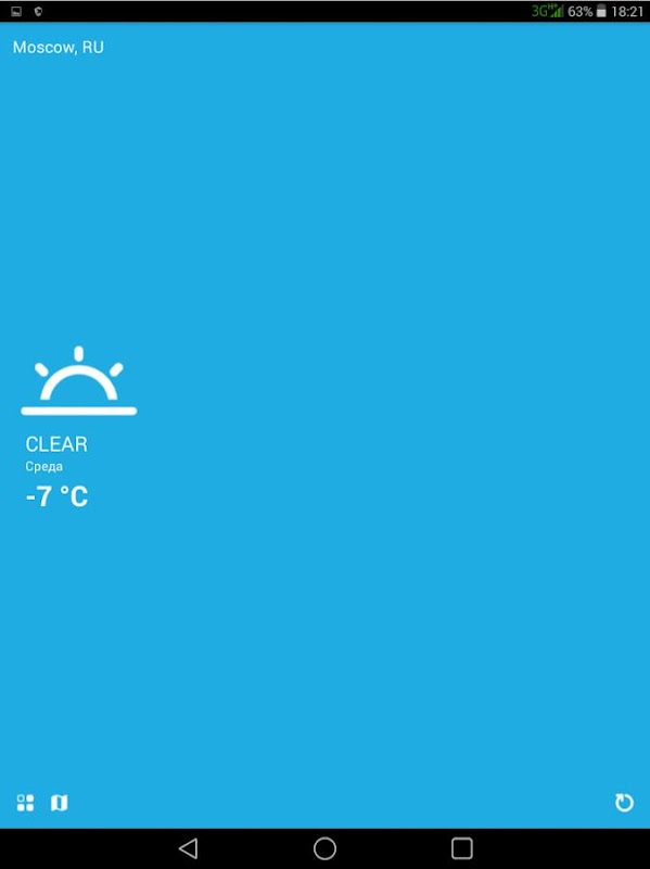 Внимание: после первой загрузки приложения необходимо нажать на иконку обновления данных, чтобы на экране Вашего смартфона или планшета отобразилась погода именно Вашего города!