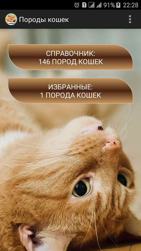 А Вы знали что в мире существует около 146 пород домашних кошек? Вы смогли бы с легкостью перечислить их все или рассказать что-то интересное о каждой породе? Когда Вы посещаете выставки кошек, легко ли Вы определяете ту или иную породу? С данным приложением Вы научитесь это делать легко!