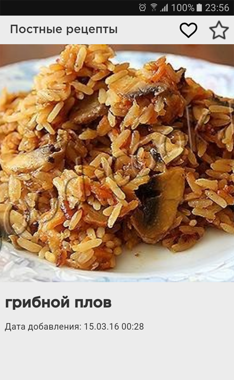 В этом приложении «Постные рецепты» представлены рецепты приготовления различных постных праздничных блюд – первого, второго, десертов и выпечки. Тут вы можете найти постное меню на каждый день. Постные рецепты не должны быть скучным и однообразным. Крупы, овощи, фрукты, грибы, всевозможные соленья и маринады - постные блюда с этими продуктами не только очень вкусны, но еще и полезны. Каши могут стать основой постного стола: в них много ценных витаминов, микроэлементов, а главное - "правильных" углеводов, которые снабжают организм человека энергией, дают ему силы. Только не надо думать, что каша - это скучно и однообразно. Во-первых, выбор крупы довольно большой: гречка, перловка, пшеничная крупа, кускус, киноа, пшено, рис. Во-вторых, крупы прекрасно сочетаются с тушеными и свежими овощами и грибами. Причем готовить их можно раздельно и смешивать уже в тарелке, а можно готовить вместе - тогда крупа будет впитывать в себя овощной и грибной сок.