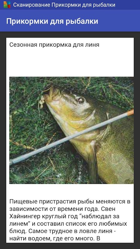 Приложение содержит рецепты рыбацких прикормок для ловли разных видов рыб: