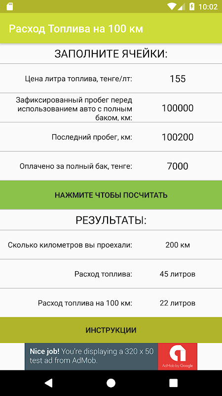 Таким образом, данное приложение будет в помощь большинству автомобилистов для расчета расхода топлива испульзуя удобный и проверенный алгоритм.