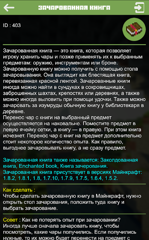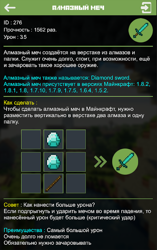Удобный и интерактивный интерфейс поможет вам быстро найти необходимый предмет. Полноценные описания, тактика, достоинства и особенности к каждому предмету или мобу.