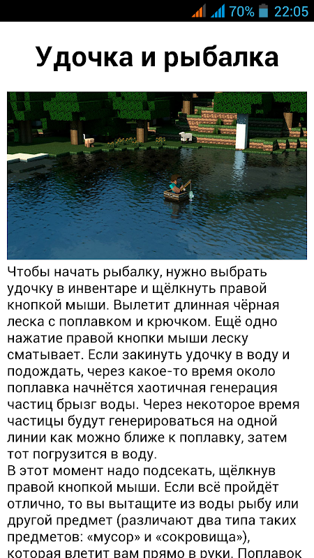 Это приложение содержит различные НЕОФИЦИАЛЬНЫЕ руководства, гайды, и статьи по всеми известной нами игры. Удобная навигация, простой дизайн. Для доступа к информации и статьям не нужен доступ в интернет. Также присутствует карта статей, для навигации в приложении и поиска нужной статьи, так что будет очень просто найти нужную информацию.