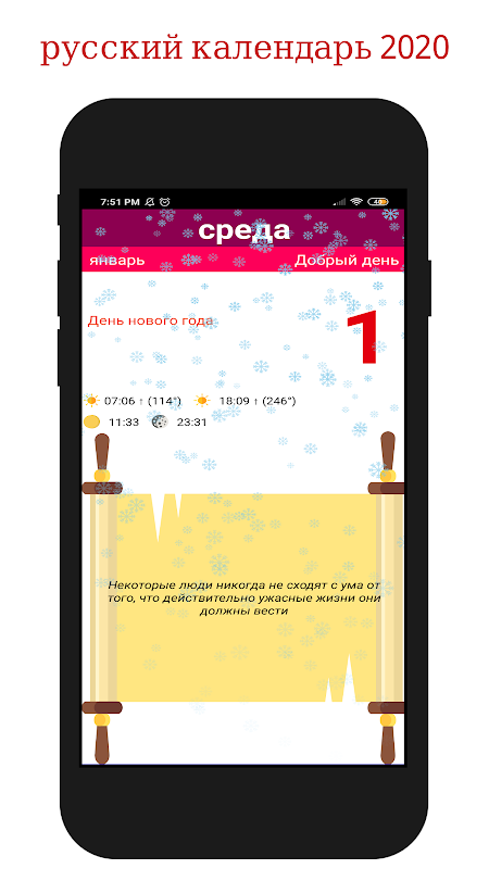 русский календарь 2020