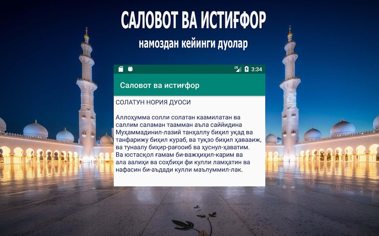 Utworzono kluczowanie Zekrlar. Duolar, Salovotlar, Istiғflar. Namoz ўқish