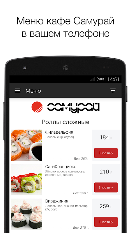 Informacje Сеть городских кафе «Самурай». Доставка. APK