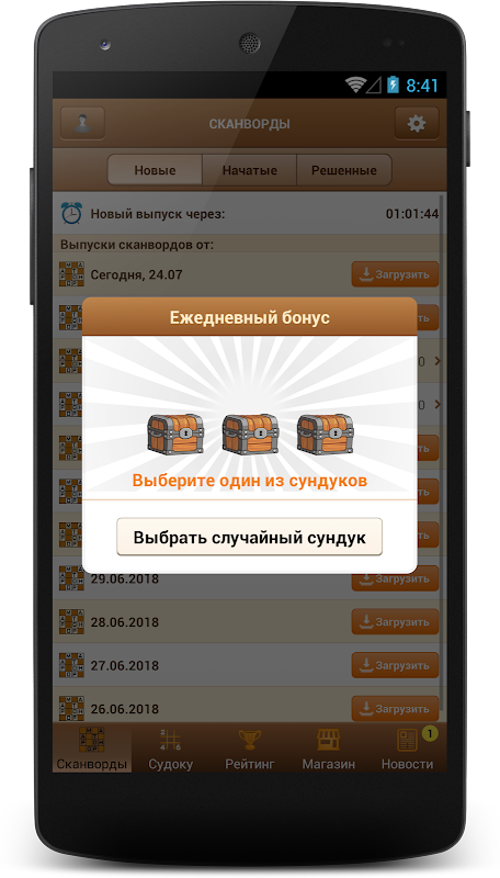 ⚙ Для загрузки новых ежедневных сканвордов необходимо соединение вашего мобильного устройства с Интернетом.