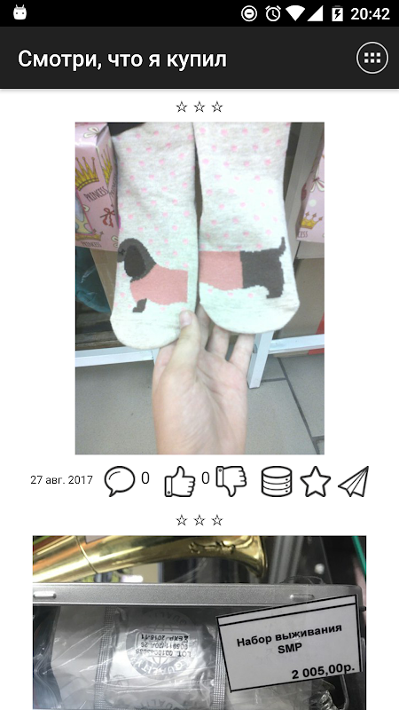 В этом приложении ты сможешь поугарать над смешными или необычными покупками, которые поднимут тебе настроение. Кроме этого ты сможешь делится со всеми своими покупками или спрашивать советы по приобретению чего-либо или просто смотреть покупки других людей. Хорошее настроение, юмор и прикольные товары ты сможешь увидеть в приложении "Смотри, что я купил"! Здесь ты сможешь делится вещами, которые ты приобрёл, но они не оправдали твоих ожиданий в смешном смысле этого слова!