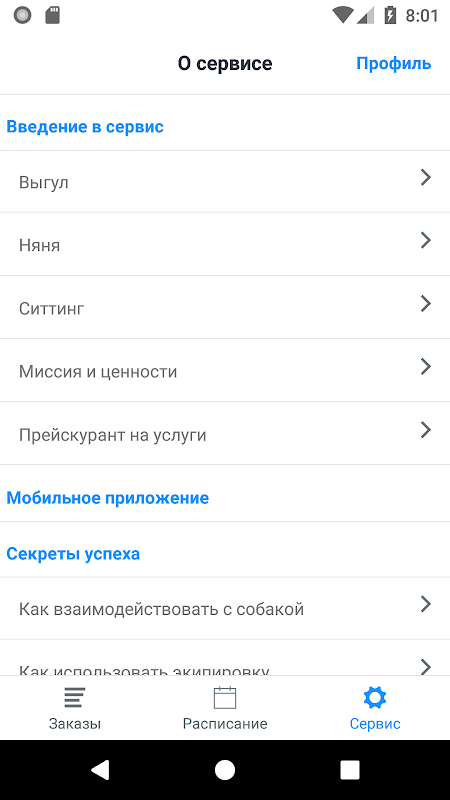 Чтобы воспользоваться приложением, пройдите отбор и обучение в сервис Собака-гуляка на сайте www.dog-walk.ru