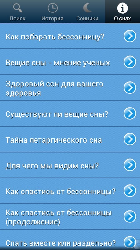 - Просмотреть информацию об интересующем вам соннике, можно зайдя на вкладку "Сонники" и долгим нажатием выбрать нужный пункт.