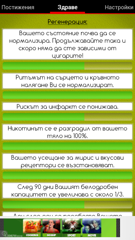 Spri Cigarite e aplikaciq za vashiq mobilen telefon, koqto vi pomaga da se otuchite ot tozi losh navik - pusheneto. Tq sadeistva na vasheto reshenie da sprete cigarite kato broi dnite v koito vie veche ne pushite, izchislqva spestenite ot vas pari za cigari i nakratko vi pokazva kak se vazstanovqva vasheto tqlo. "Spri Cigarite" stimulira vas i vasheto nachinanie po patq kam edin po-zdravosloven jivot! Kogato usetite, che vashiq cigaren glad vi pritesnqva, butona "Kriza" shte vi spasqva s kratki saveti. Shte se radvame tazi aplikaciq da pomogne na mnogo hora v Balgaria. Za da im pomognete i Vie, molq izpolzvaite butona "Spodeli".