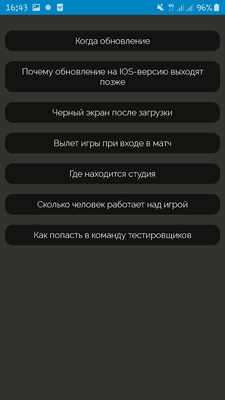 - Убран пункт "Читы и баги" - Добавлен пункт "Игровой сленг" - Добавлен пункт "Система банов" - Добавлен пункт "Как поиграть на пк" - Добавлен пункт "Почему вылетает игра"
