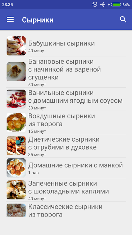 Сырники — блюдо украинской, русской, белорусской кухонь в виде оладий, жареные лепёшки из творога, смешанного с мукой и яйцами. Обычно сырники жарят на растительном масле, но по некоторым рецептам требуется запекать их в духовке.