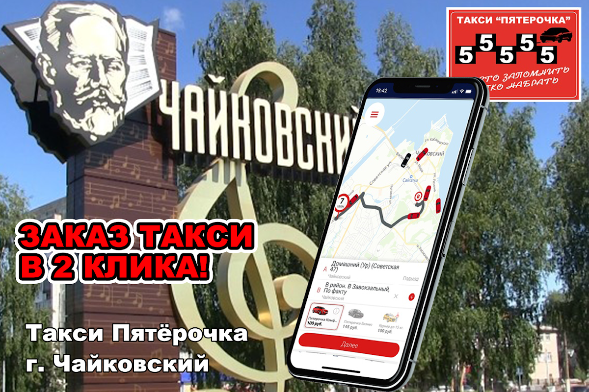Taxi Pyaterochka 55555 Czajkowski - zamów samochód 2 kliknięciami. Zainstaluj teraz!