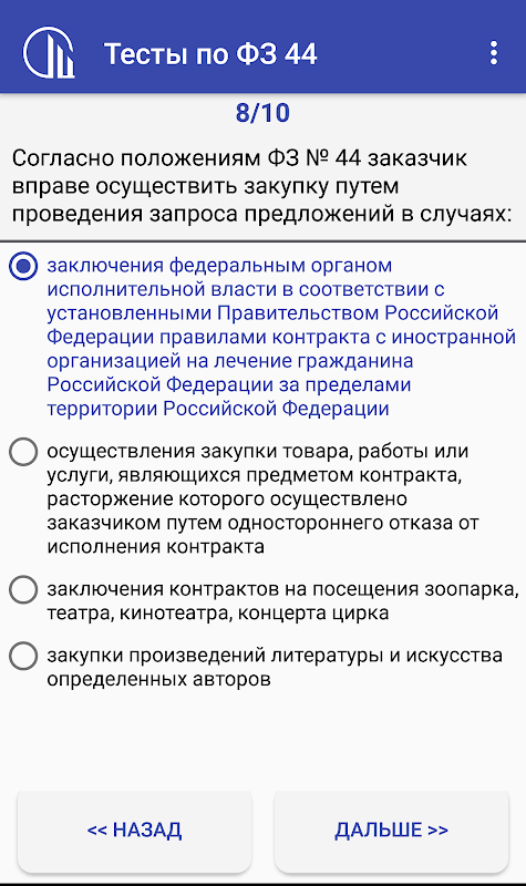 Informacje Тесты по Госзакупкам (ФЗ 44) APK