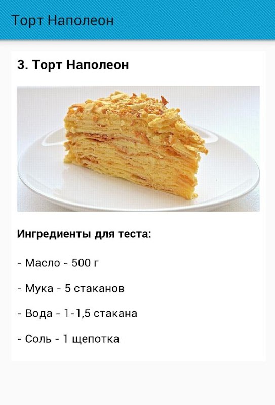 Торт Наполеон – необычайно вкусное лакомство нашего детства и юности. Торт Наполеон — отличное решение как для вечернего чаепития после вкусного ужина, так и для утренней трапезы. Одного кусочка на завтрак с кружкой горячего чая или кофе будет вполне достаточно для того, чтобы не было чувства голода до самого обеда.