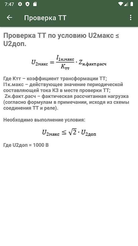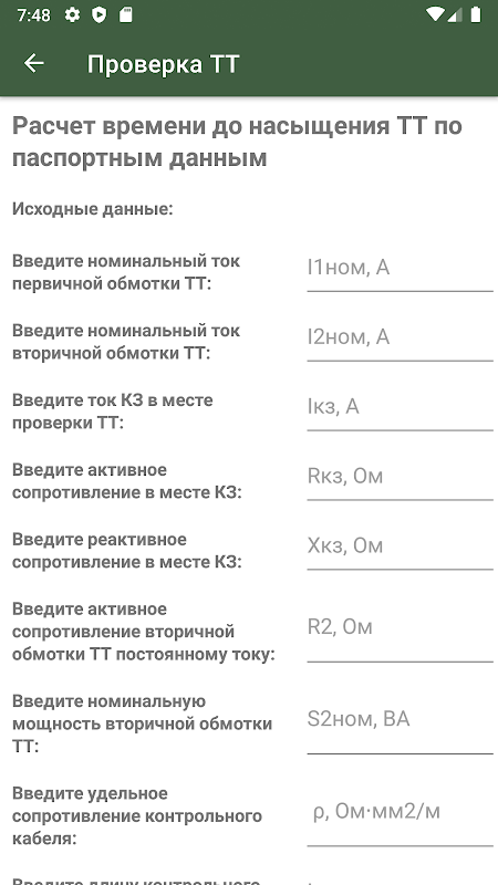 В данном приложении осуществляется проверка трансформатора тока на допустимую погрешность и расчет времени до насыщения трансформатора тока.