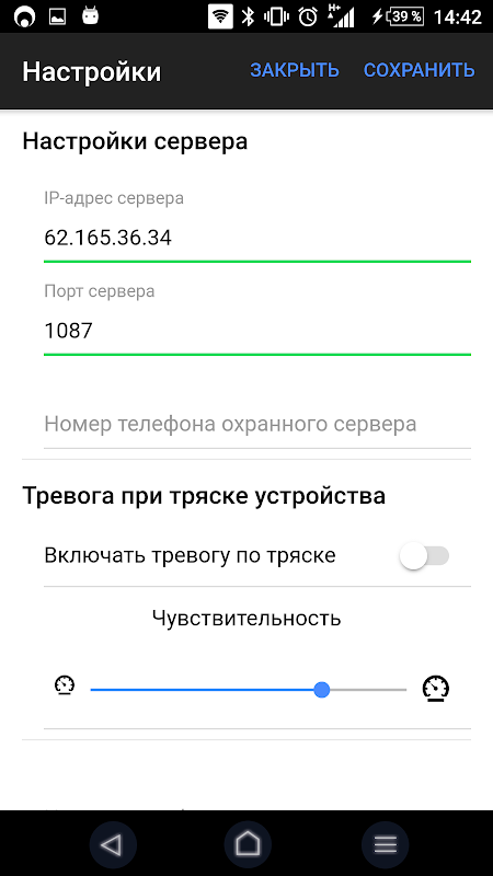 Tryb alarmu -Aktivatsiya przez potrząsanie telefonem