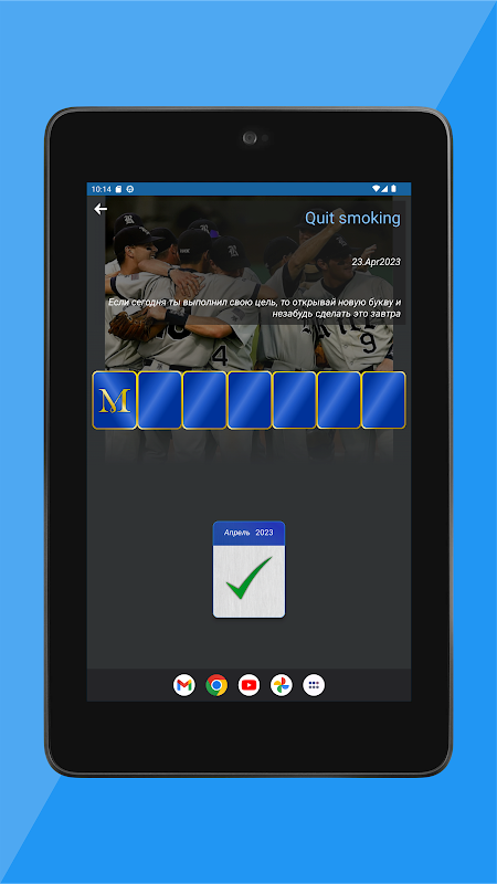 2. Dla motywacji w drodze do celu. Powiedzmy, że masz wielki cel. Przede wszystkim musisz zaplanować, jak to osiągnąć. Podziel swój plan na małe kroki, które możesz podjąć każdego dnia. Jeśli dzisiaj wykonałeś co najmniej jeden krok, zaznacz to w aplikacji. Kiedy zbierzesz całe słowo, proszę siebie.