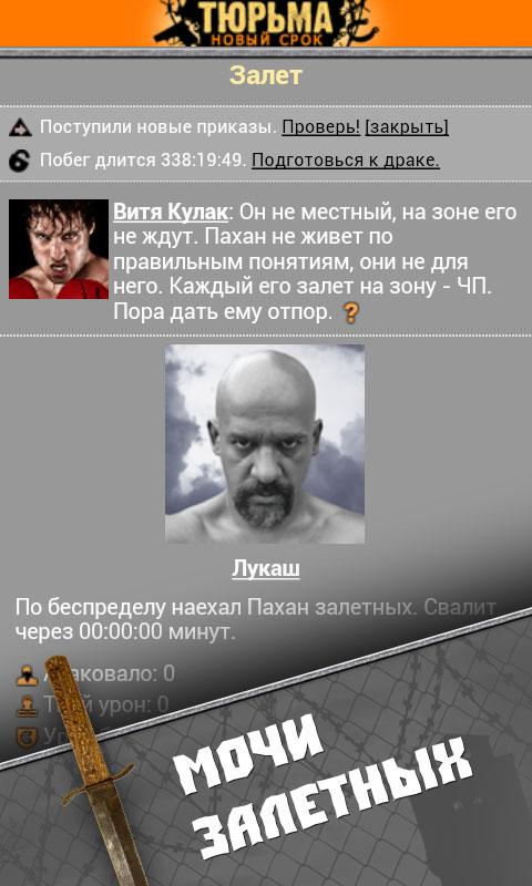 Мобильная многопользовательская онлайн игра «Тюрьма. Новый срок» - это несомненный хит бойцовских игр. Тысячи пользователей на просторах СНГ полюбили игру за нестандартный сюжет и весёлые шутки. Спеши присоединиться, управляй Бойцом, тренируя его в Качалке и заботясь о его Экипировке, стремись к новым достижениям и высшим уровням!