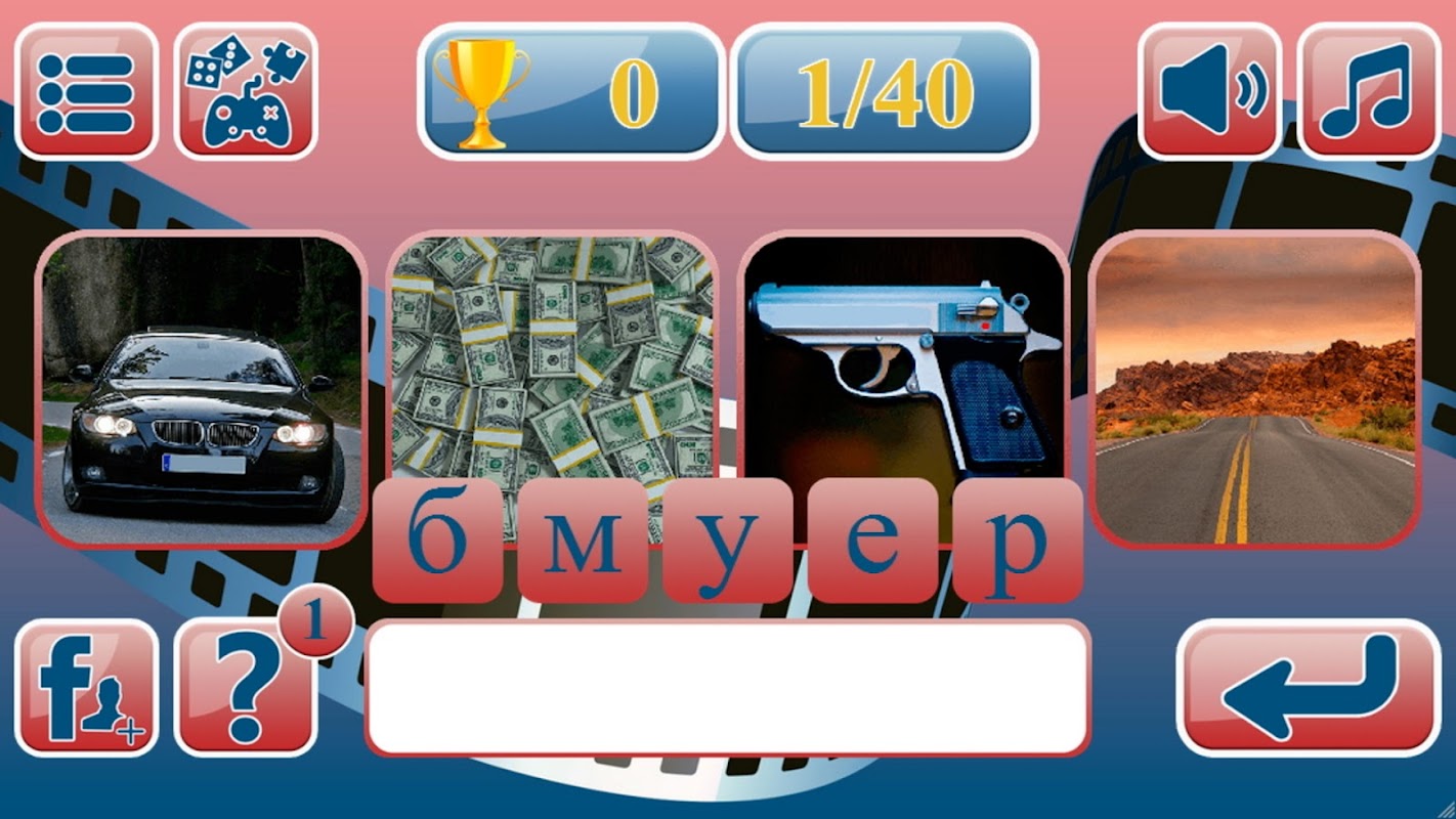Gra składa się z 50 ciekawych poziomów. Na każdym poziomie na ekranie wyświetlane są 4 obrazy: 2 otwarte i 2 zamknięte. Jeśli z dwóch zdjęć jasno wynika, co to za film, może wpisać tytuł w polu odpowiedzi i otrzymać 4 punkty za poprawną odpowiedź. Jeśli dwa obrazy nie wystarczą, możesz kliknąć przycisk podpowiedzi, a otworzy się 3 zdjęcie, dzięki czemu gracz może zdobyć 3 punkty. Gdy ponownie klikniesz na wskazówkę, otworzy się 4 zdjęcie, a gracz zdobędzie 2 punkty. Jeśli nie możesz odgadnąć filmu z 4 obrazów, możesz jeszcze dwa razy użyć przycisku ściągawki, a następnie zobaczysz zestaw liter, które składają się na słowo odpowiedź. Ale z każdym kliknięciem podpowiedzi gracz traci kolejny punkt. Pod koniec gry będziesz mógł zobaczyć łączną liczbę zdobytych punktów.