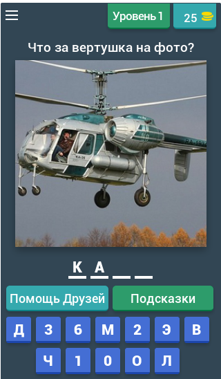 Игра "Угадай! Отечественный вертолет" создана для всех поклонников игр типа "четыре изображения, одно слово", "четыре фотографии, одно слово". Только вместо 4-х картинок показывается фото вертолета и вопрос.