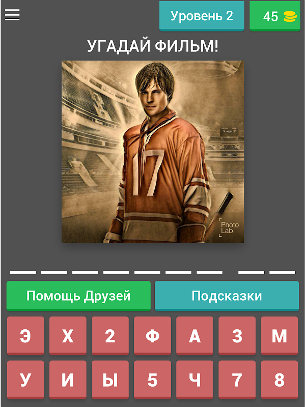 Узнавая фильмы и вписывая название вы переходите на следующий уровень. В отличие от других подобных приложений, мы добавили самые популярные фильмы.
