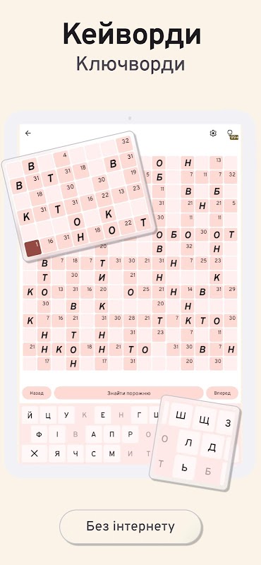 Krzyżówki, słowa kluczowe, kryptogramy - bezpłatnie, w języku ukraińskim, bez Internetu.