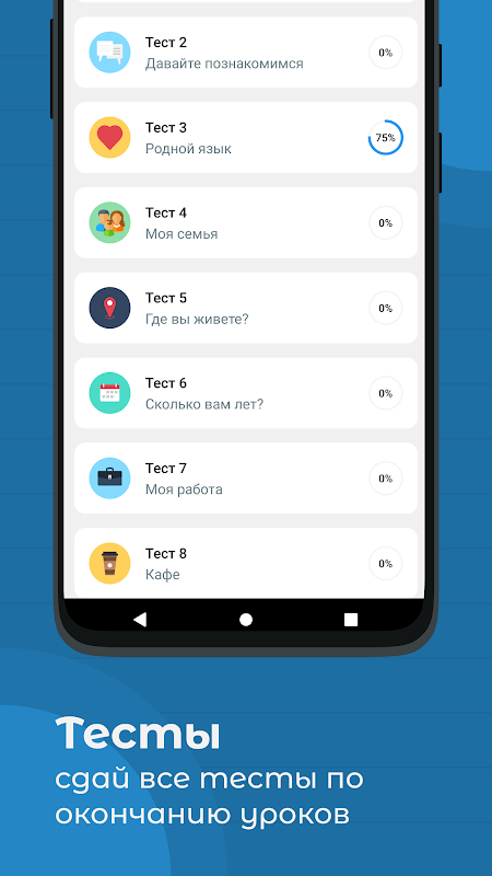 Ta aplikacja składa się z 30 lekcji w języku rosyjskim. Na koniec każdej lekcji możesz przystąpić do testów i sprawdzić swoją wiedzę.