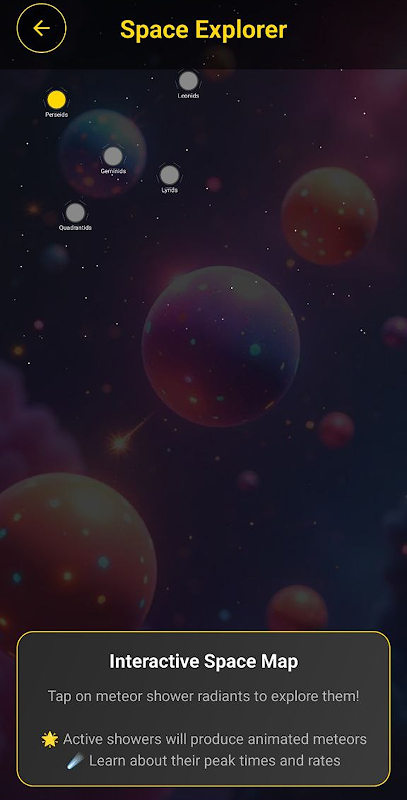 Sekcja teoretyczna służy jako rdzeń edukacyjny aplikacji, oferując szczegółowe artykuły na temat powstawania meteorów, wnikania w ziemską atmosferę i znaczenia rojów meteorów w badaniach kosmicznych. Treść jest podzielona na łatwo przyswajalne segmenty, dzięki czemu złożone koncepcje są dostępne dla użytkowników w każdym wieku i na każdym poziomie wiedzy.
