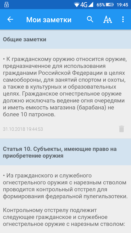 Aplikacja jest przydatnym przewodnikiem po ustawie federalnej „O broni”. Wniosek zawiera pełny tekst obowiązującej w tym momencie ustawy.
