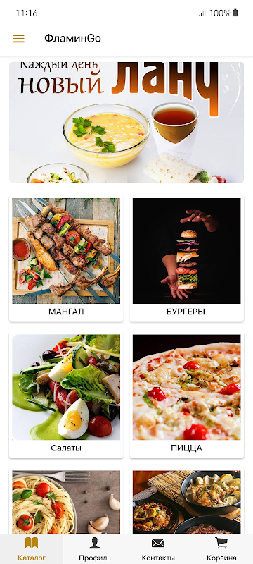 Не знаете, где вкусно и быстро поесть? Где угодно! Дома. На работе. На природе. Мы едем к вам! Доставка горячих бизнес-обедов на предприятие? Мы едем к вам! Романтический ужин? Или просто лень готовить? Авторские салаты и горячие блюда от шефа приедут точно в назначенное время. А так же: шашлык из разных видов мяса, рыба и овощи на гриле, горячая пицца и многое другое.