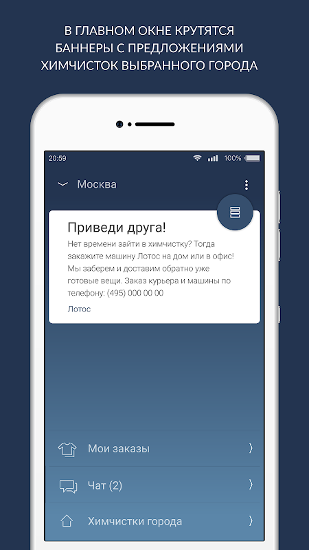 Aplikacja pozwala na sprawdzenie informacji o ośrodkach pralnie miastach Rosji, Kazachstanu, Ukrainy, Białorusi i Łotwy są podłączone do usługi „sucho”: Informacje o punktach zbiórki ich lokalizacji, godziny otwarcia, numery telefonów, aktualnych promocjach i nowościach. Ponadto, korzystając z aplikacji można znaleźć: