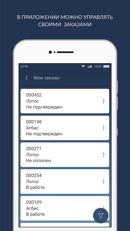 - zobaczyć swoje zamówienia w pracy, ich statusu, historii zamówień;
